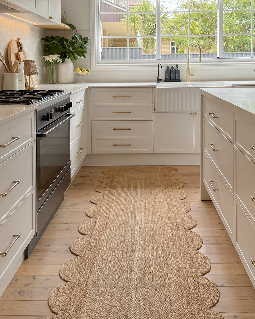 Ejiya Natural Brown Scalloped Jute Runner Rug