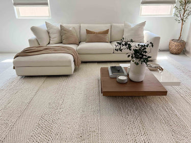 Designed in house and exclusive to the Miss Amara Collection, Fleur is a luxurious natural wool blend featuring a contemporary beige ivory palette. Fleur has been handcrafted using a unique combination of traditional rug making techniques, showcasing the intricate workmanship of our skilled artisans.
