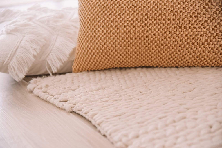 A rug introduces warmth and softness underfoot. Position it two-thirds under the bed, allowing it to extend beyond the sides and foot.