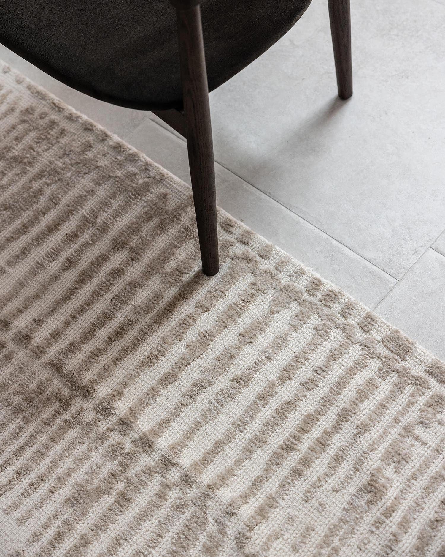 Nahba is a stunning textured ivory and cream rug with carved lined print.