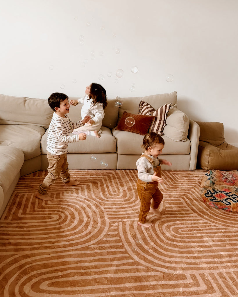 - Comfort and warmth. There's nothing quite like the soft, plush feel of a rug under your feet. It adds a layer of comfort and cosiness, making your home feel more inviting. Especially in rooms with hard flooring, a rug or carpet can provide much-needed insulation, keeping the space warm and snug. Plush kids rugs, for example, can make the living room more play-friendly for kids.