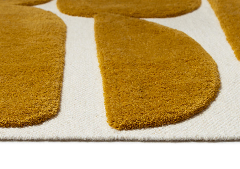 Zulema is a mustard wool rug featuring a carved abstract pattern.