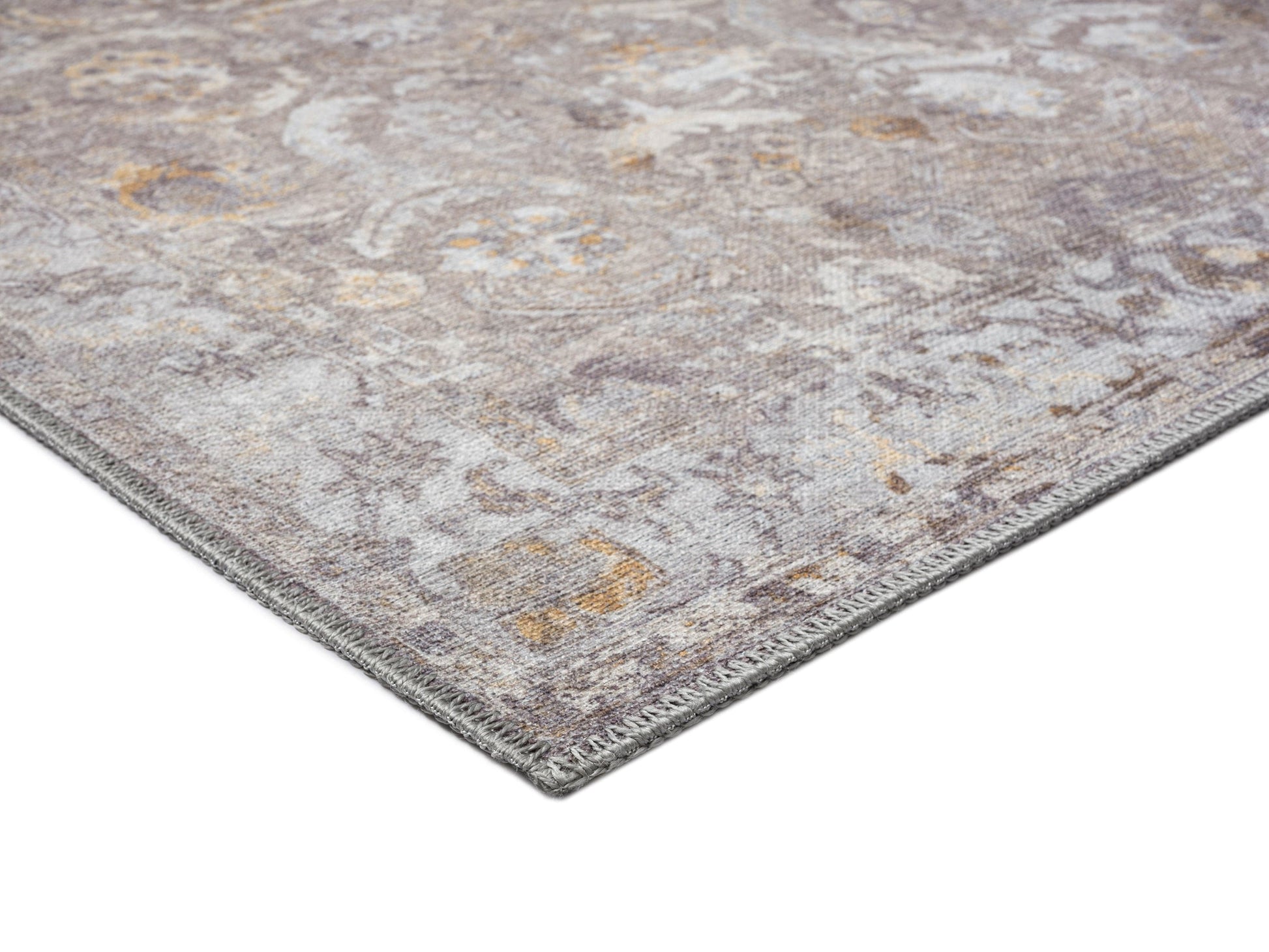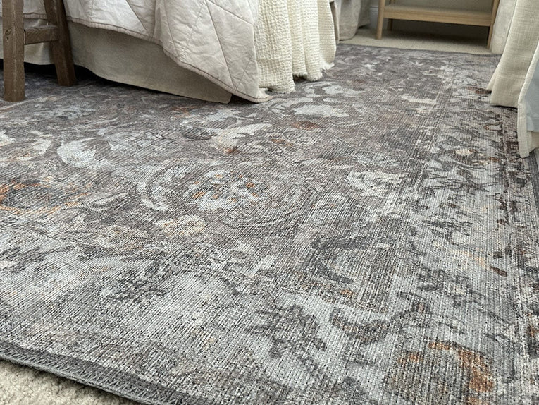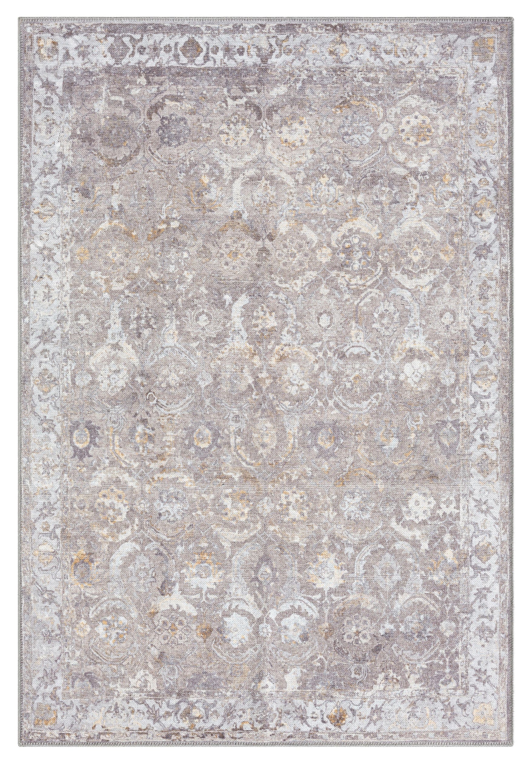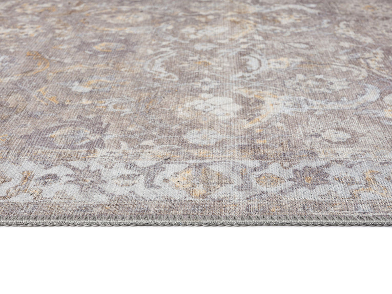 Ava Grey and Gold Traditional Distressed Washable Rug
