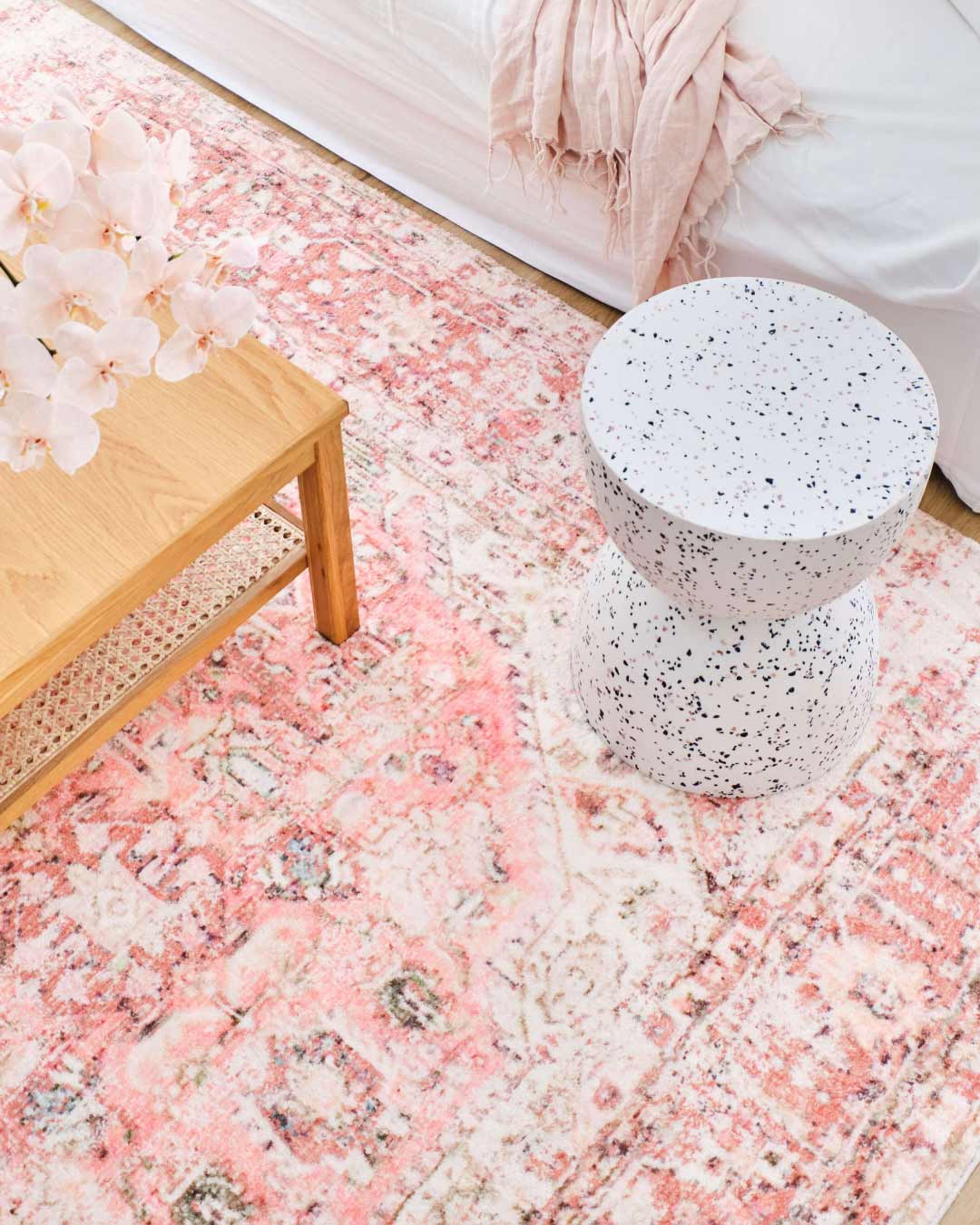 Beatrice is machine-woven using modern looming techniques and is constructed from a plush 8mm pile of ultra soft polyester fibres. An absolute dream underfoot! It’s a washable and foldable rug, making it a perfect rug for medium-traffic zones, kid and pet-friendly homes.