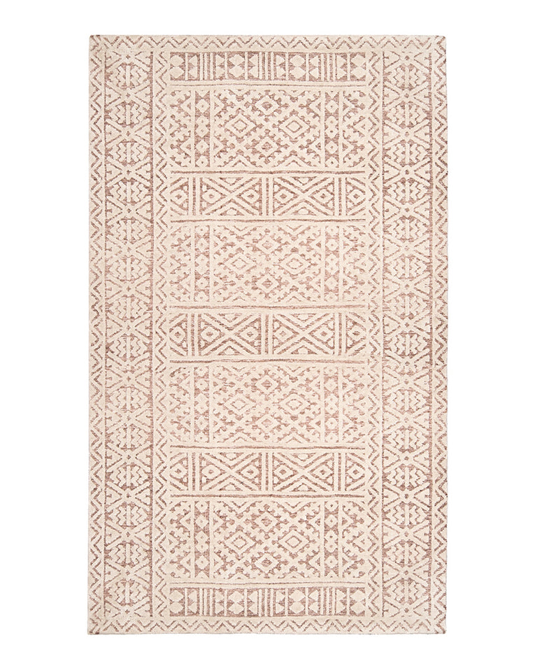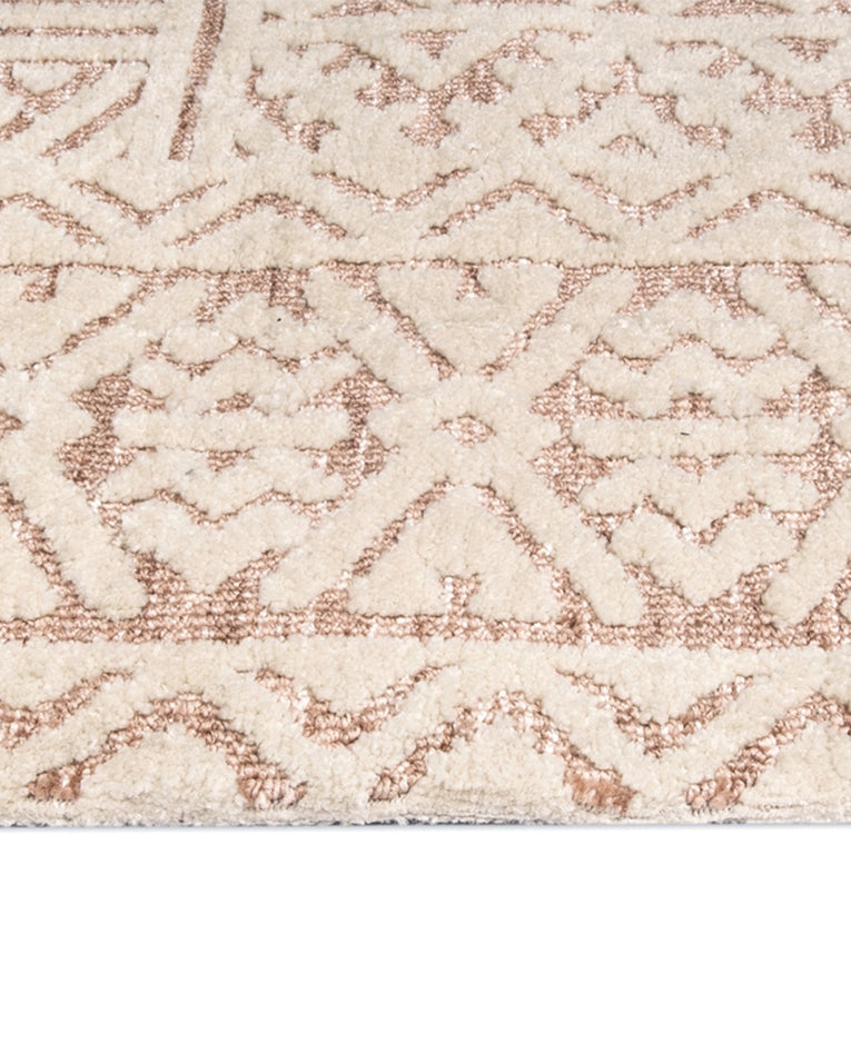 Bobbie is a stunning blush peach rug with a warm ivory geometric tribal textured pattern.
