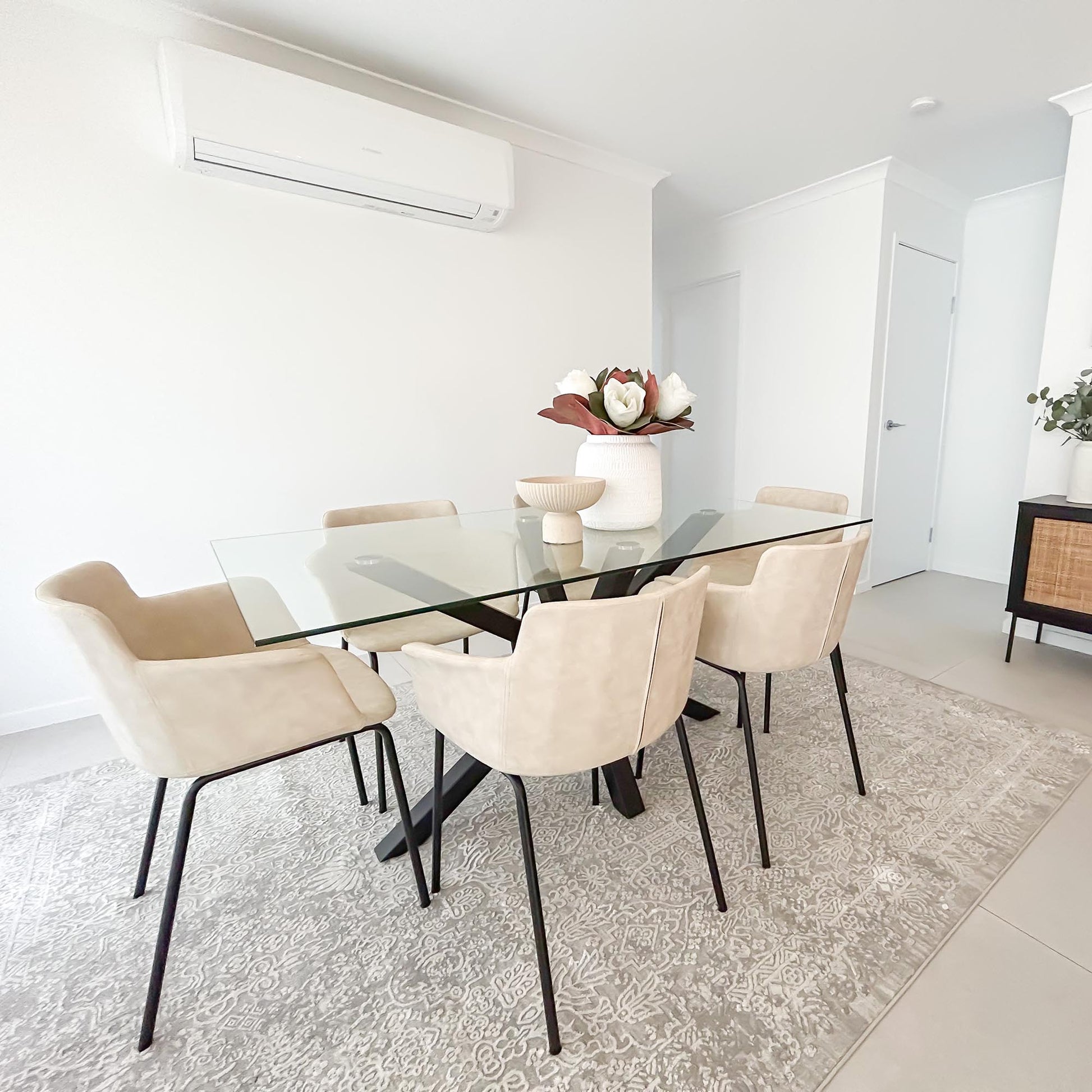 A rug does more than decorate. It frames your furniture, defines each zone and brings balance to the room. When the proportions are right, the space feels settled and cohesive.