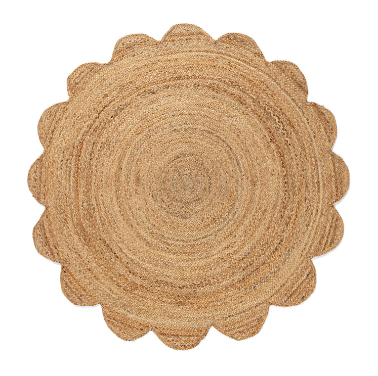 Celeste is a lovely flatweave jute rug adorned with scallop borders.