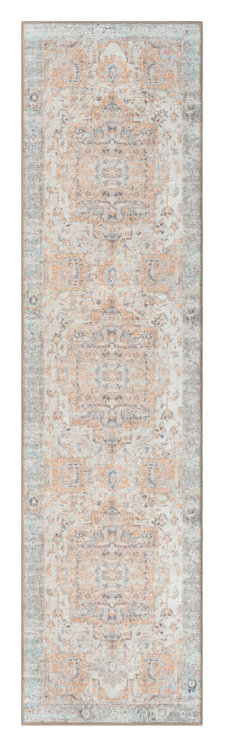 Ceren Orange and Blue Traditional Distressed Washable Runner Rug