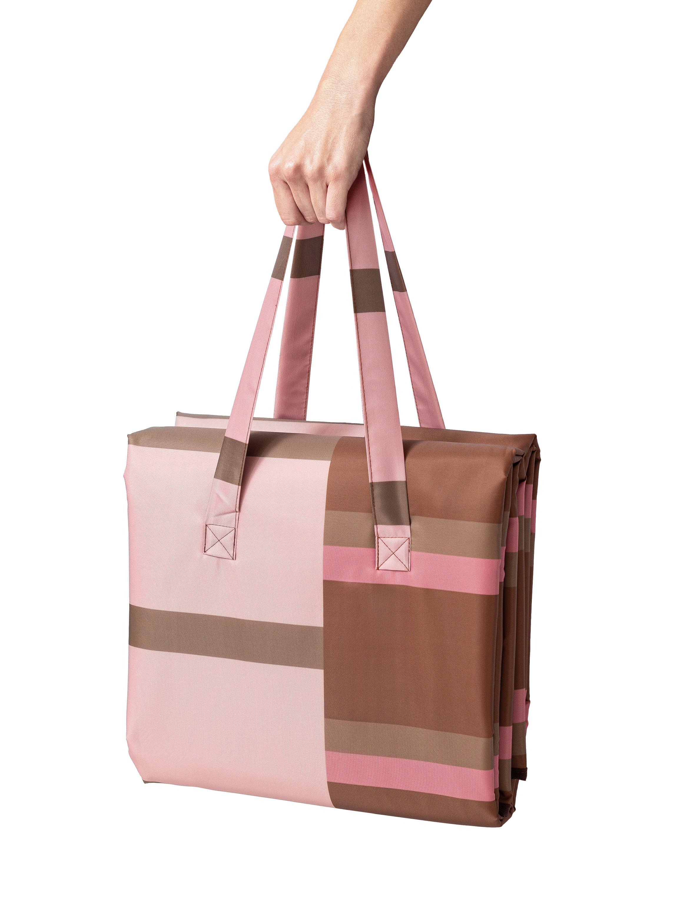 A mat made for warm light, lazy lunches, and barefoot afternoons, the Cezara Beach & Picnic Mat layers blush and cinnamon tones in clean, grounded stripes; a romantic clash of softness and structure.