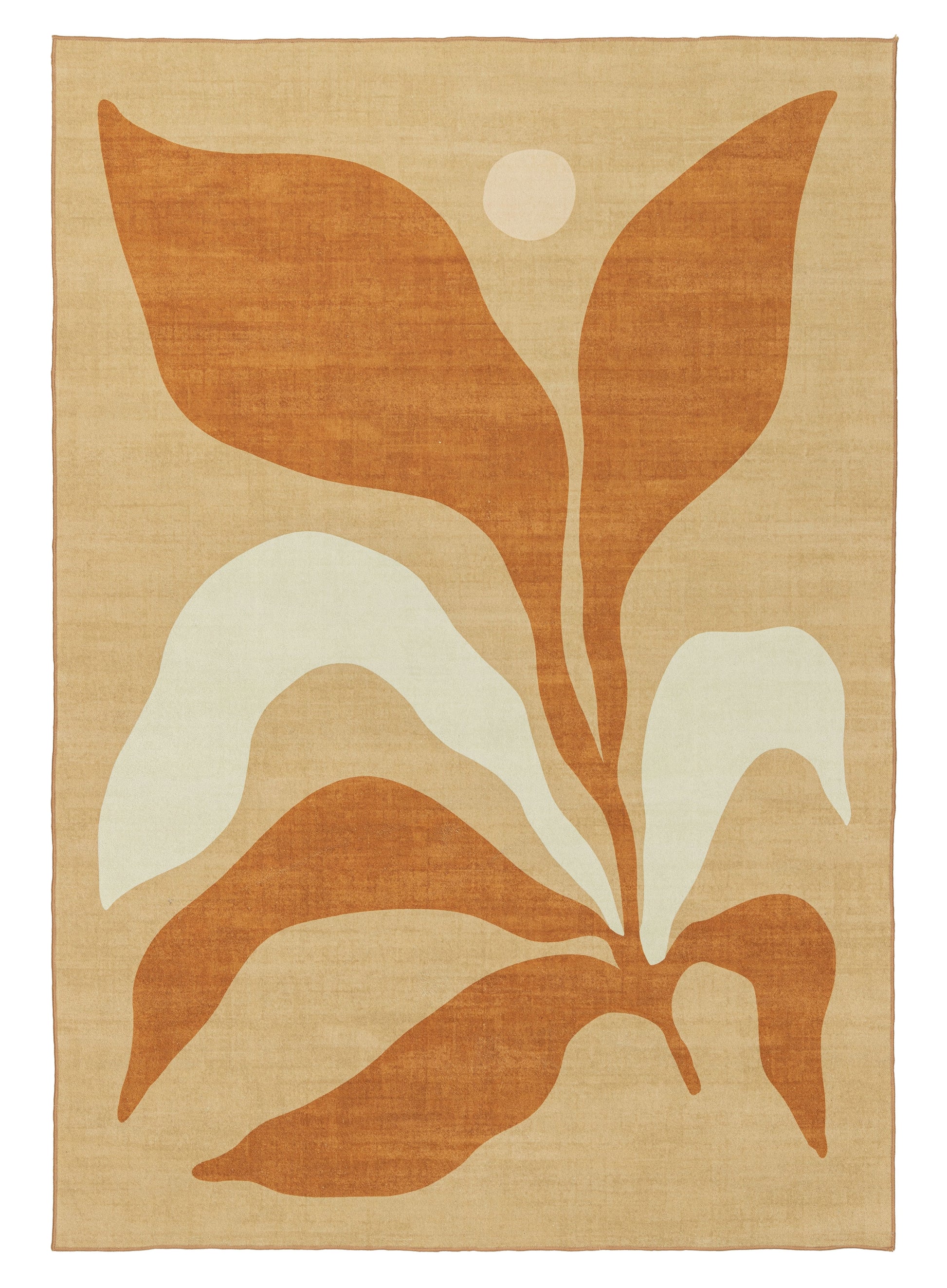Aara Terracotta and Cream Botanical Washable Rug