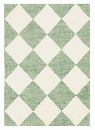 Octavia Green Cream Checkered Washable Rug