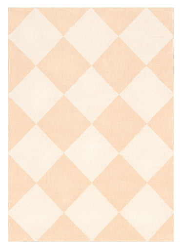 Yumi Peach Cream Checkered Washable Rug