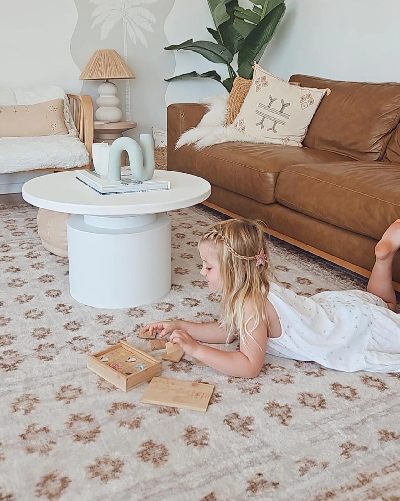 Machine-woven using modern looming techniques and is constructed from a plush 8mm pile of ultra soft polyester fibres. An absolute dream underfoot! It’s a machine washable and foldable rug, making it a perfect rug for medium-traffic zones, kid and pet-friendly homes. Designed with a built-in underlay to keep the rug in place to prevent any slipping or tripping!
