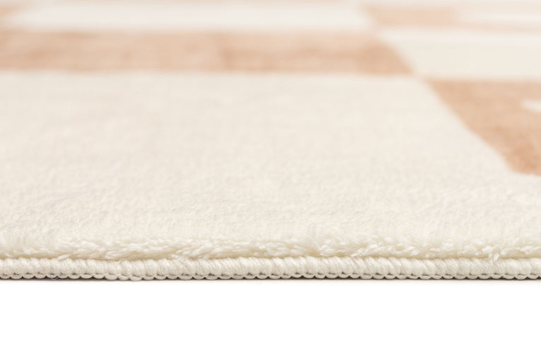 Erika Beige and Cream Checkered Washable Rug