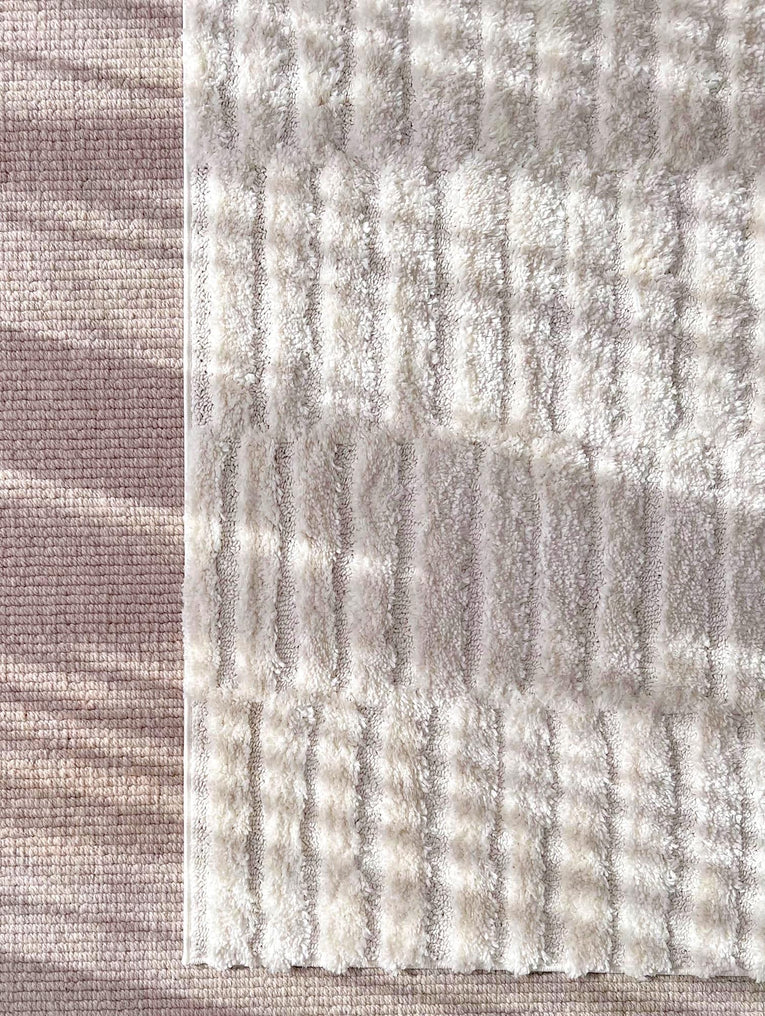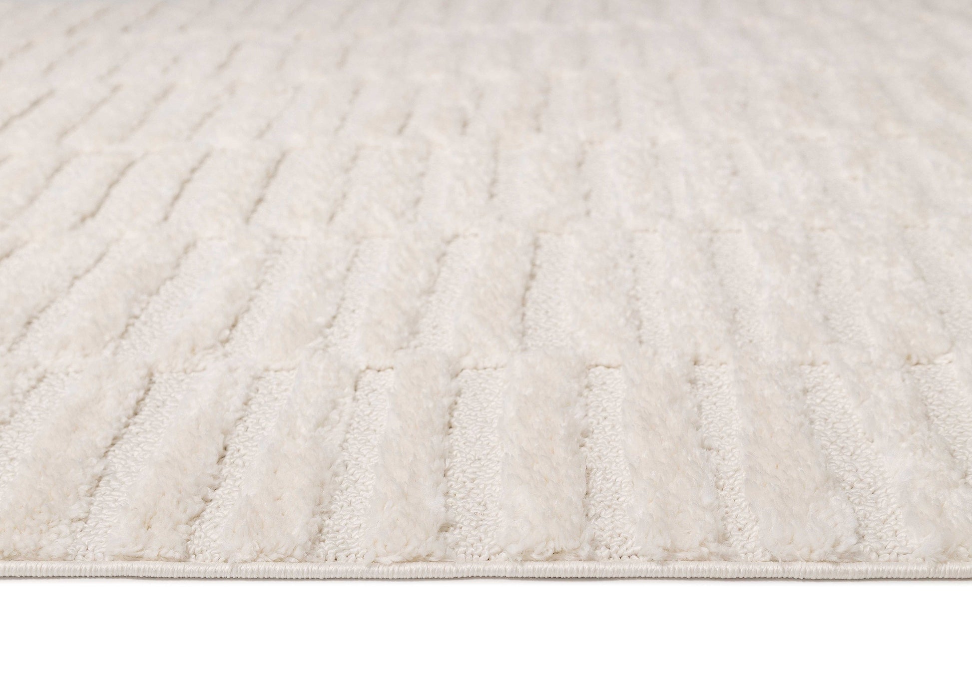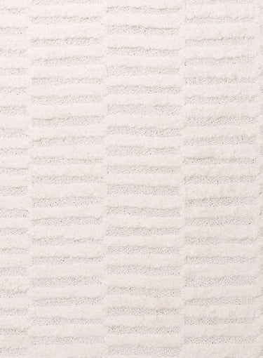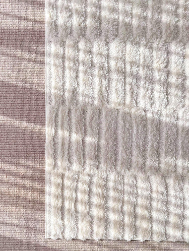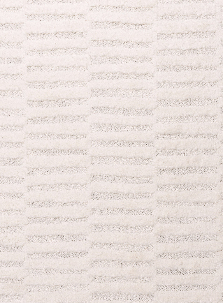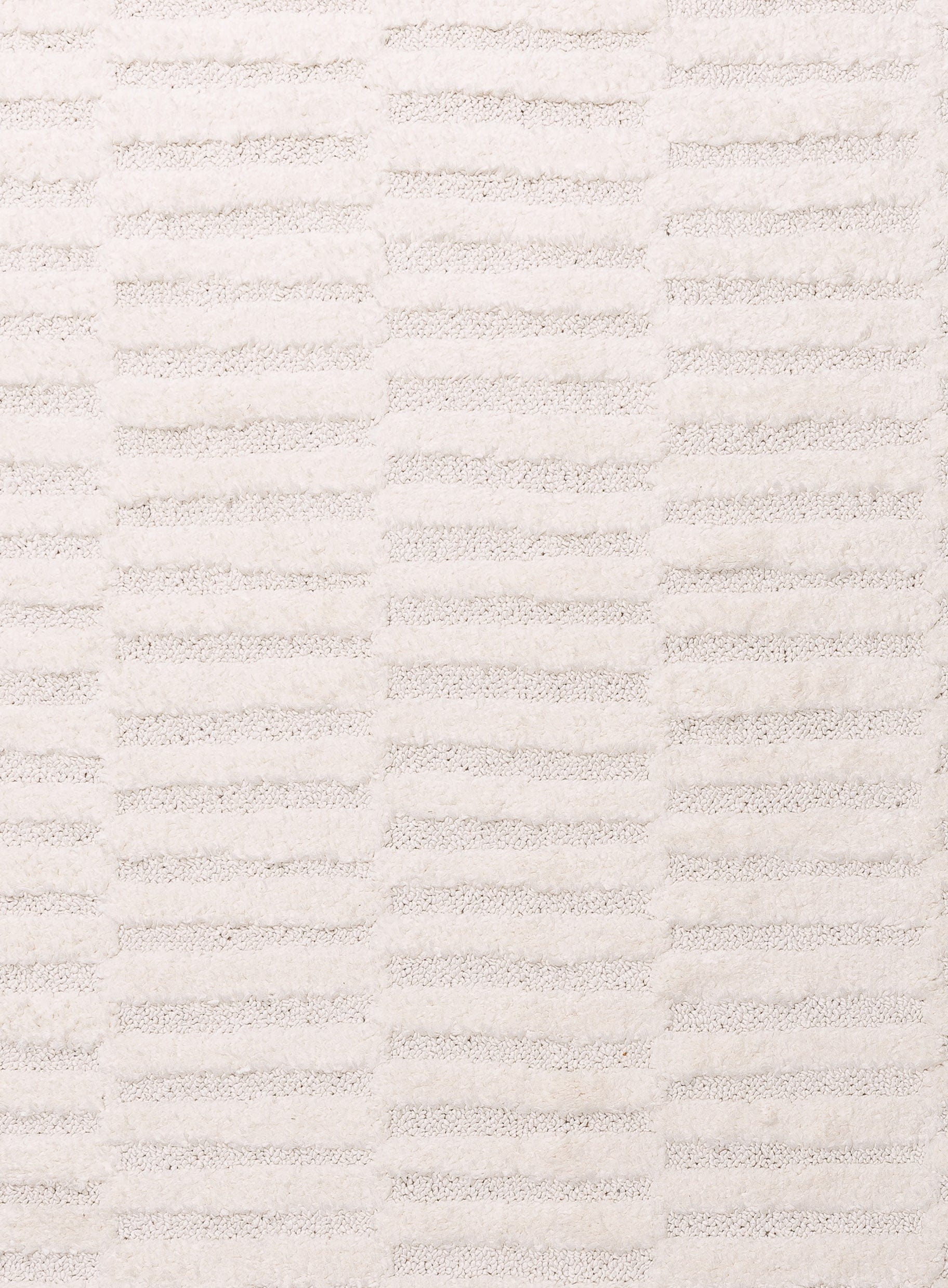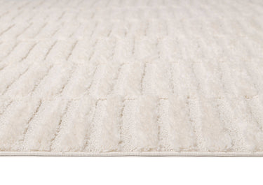 Filippa is a stunning warm-based ivory and cream rug with a carved asymmetrical stripes made from a high low pile variation.
