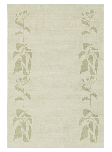 Glaiza Green Botanical Border Washable Rug