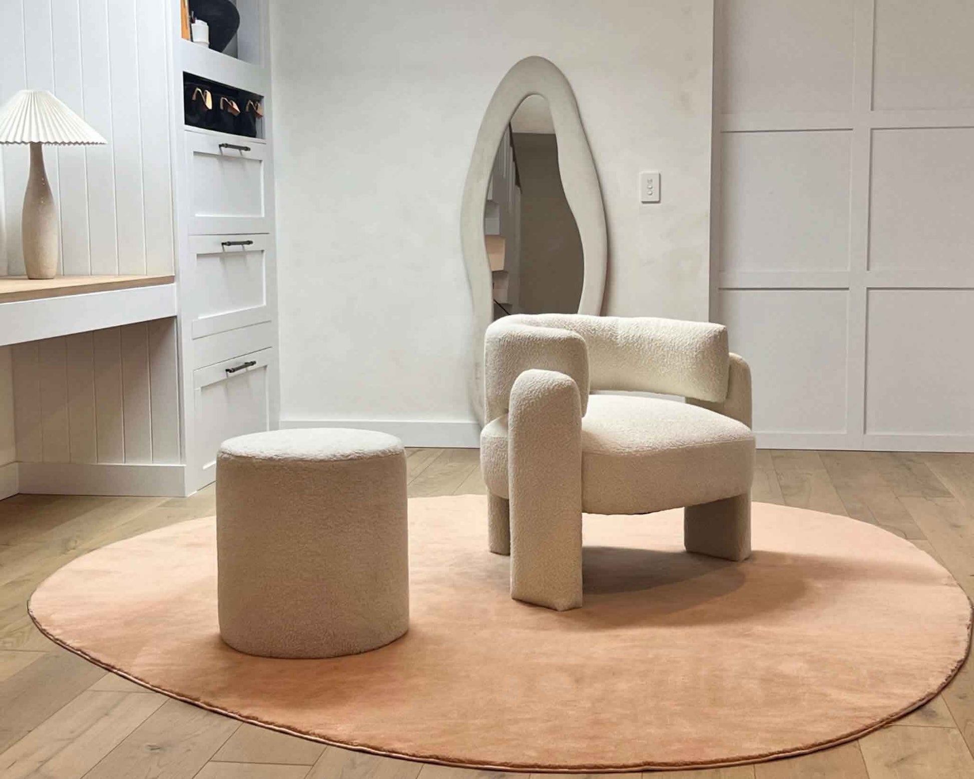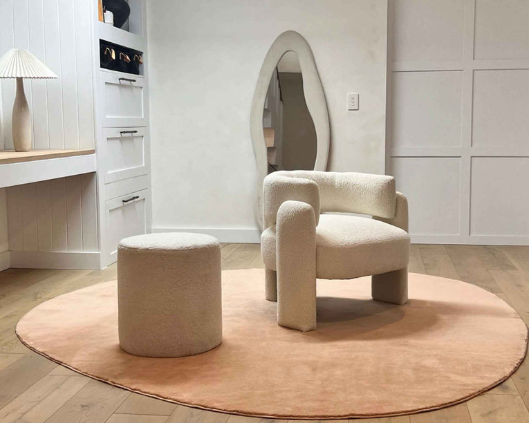 Golea is available in a rich dark beige colourway and its irregular form works beautifully in bedrooms, reading corners and nurseries.