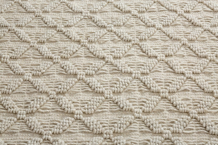 This low-pile style has been handcrafted using the traditional hooked weave technique that loops the threads to a beautiful embroidered effect and rich, three-dimensional texture. Featuring a modern diamond pattern, Hanna will create a gorgeous tactile backdrop to your contemporary decor.