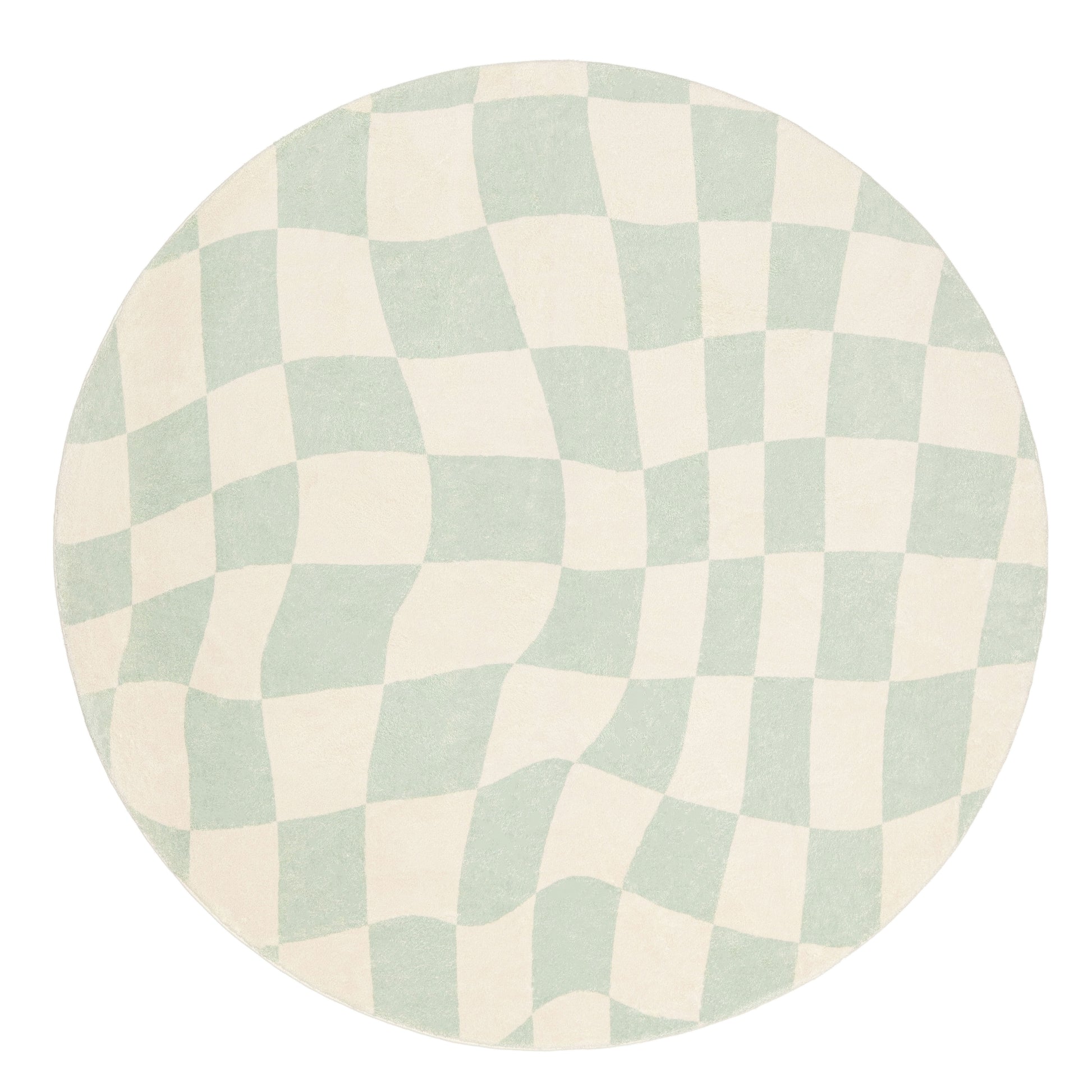 Ilenna Green and Ivory Checkered Washable Round Rug