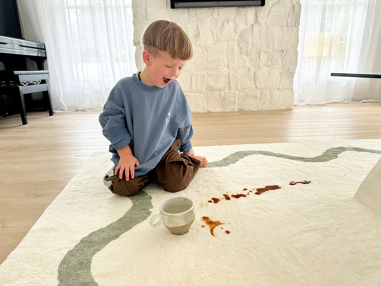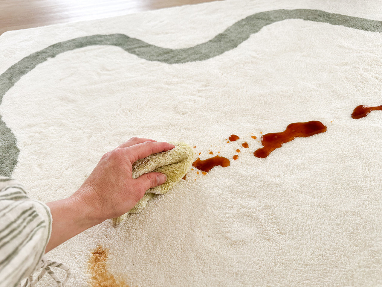 Cleaning results may vary depending on the type of stain. Blot spills promptly and wash by hand or machine as needed. Always check that your rug is machine-washable before proceeding.