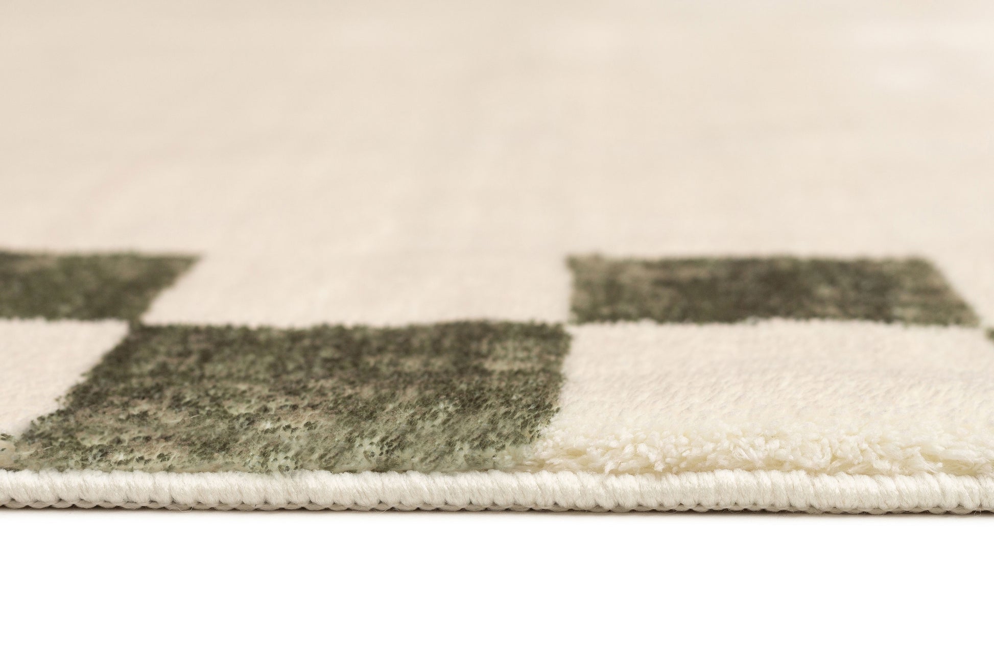 Keava is a gorgeous washable and foldable rug featuring a bordered checkered pattern in a green tone. A timeless, modern and unique design to add to any space.
