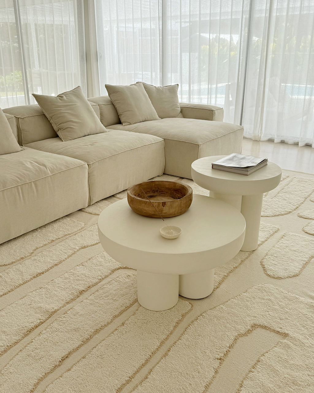 It is a natural cream tone, with an abstract design highlighted in beige making it a versatile style and a perfect way to add quiet luxury to your home.
