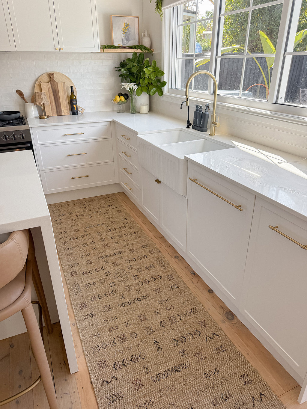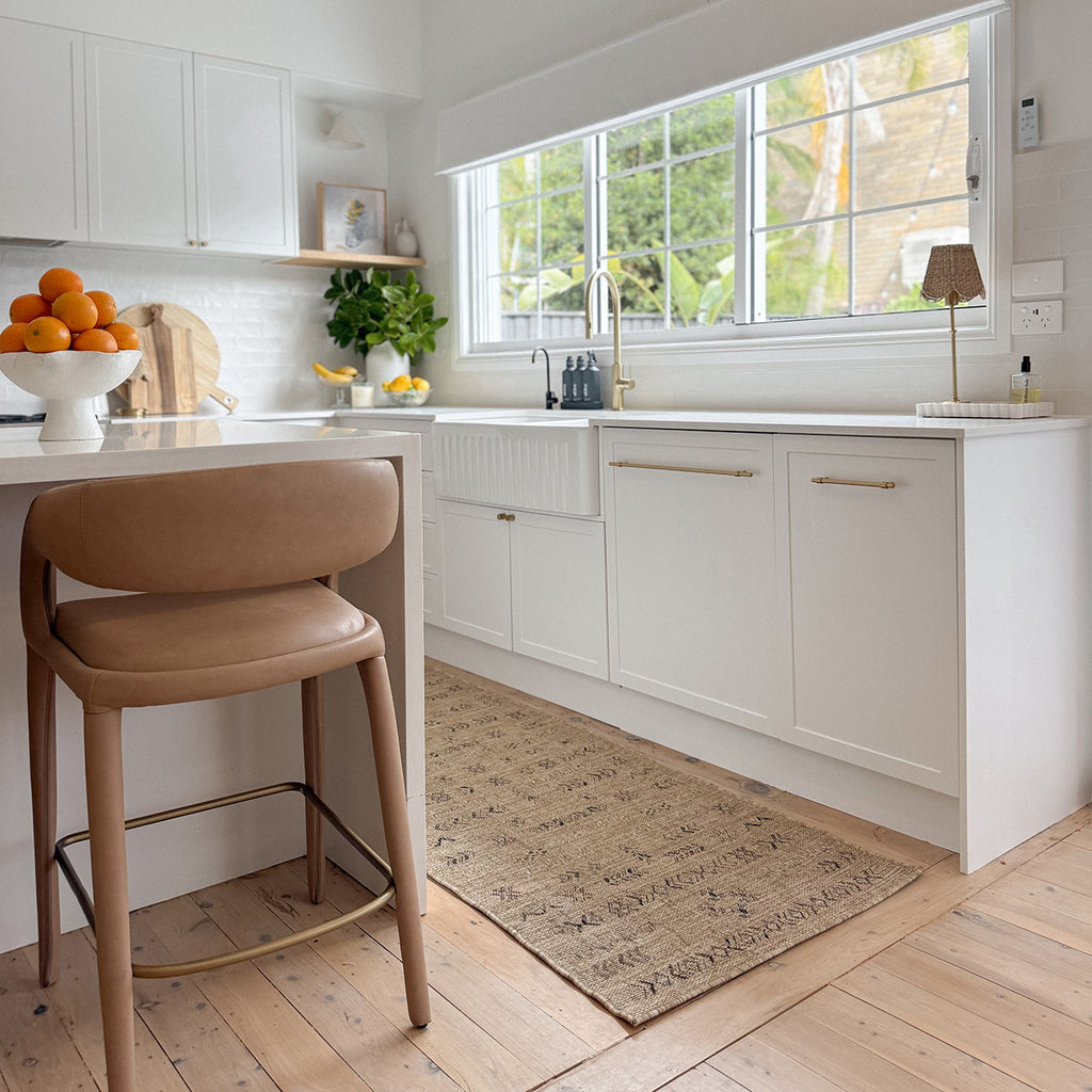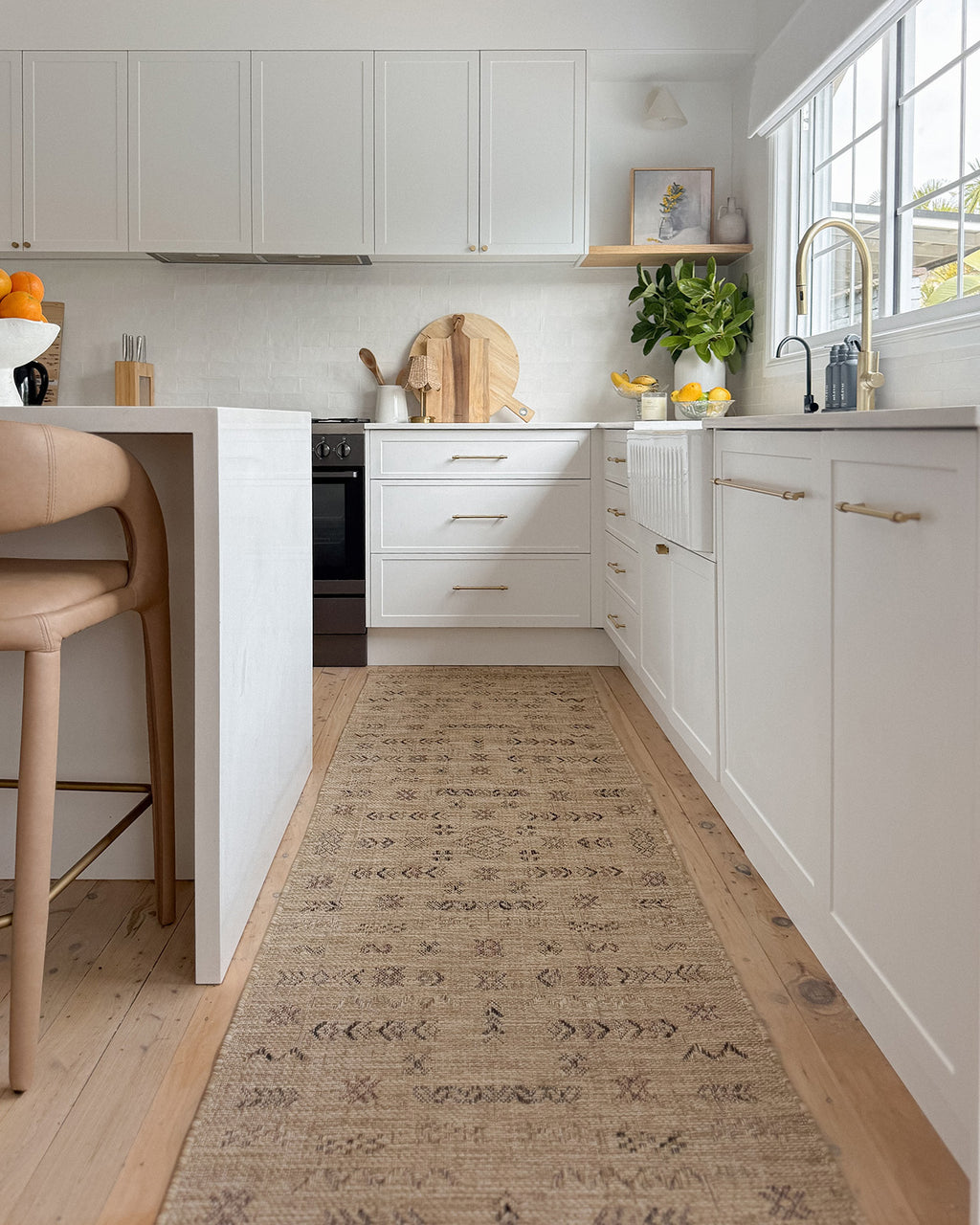 The Loom Runner is a warm sand beige indoor outdoor rug, accented with stone tribal-inspired motifs that flow across its surface. Designed in a slim runner shape, it’s a versatile choice for hallways, kitchens, or entryways where both style and durability are essential.