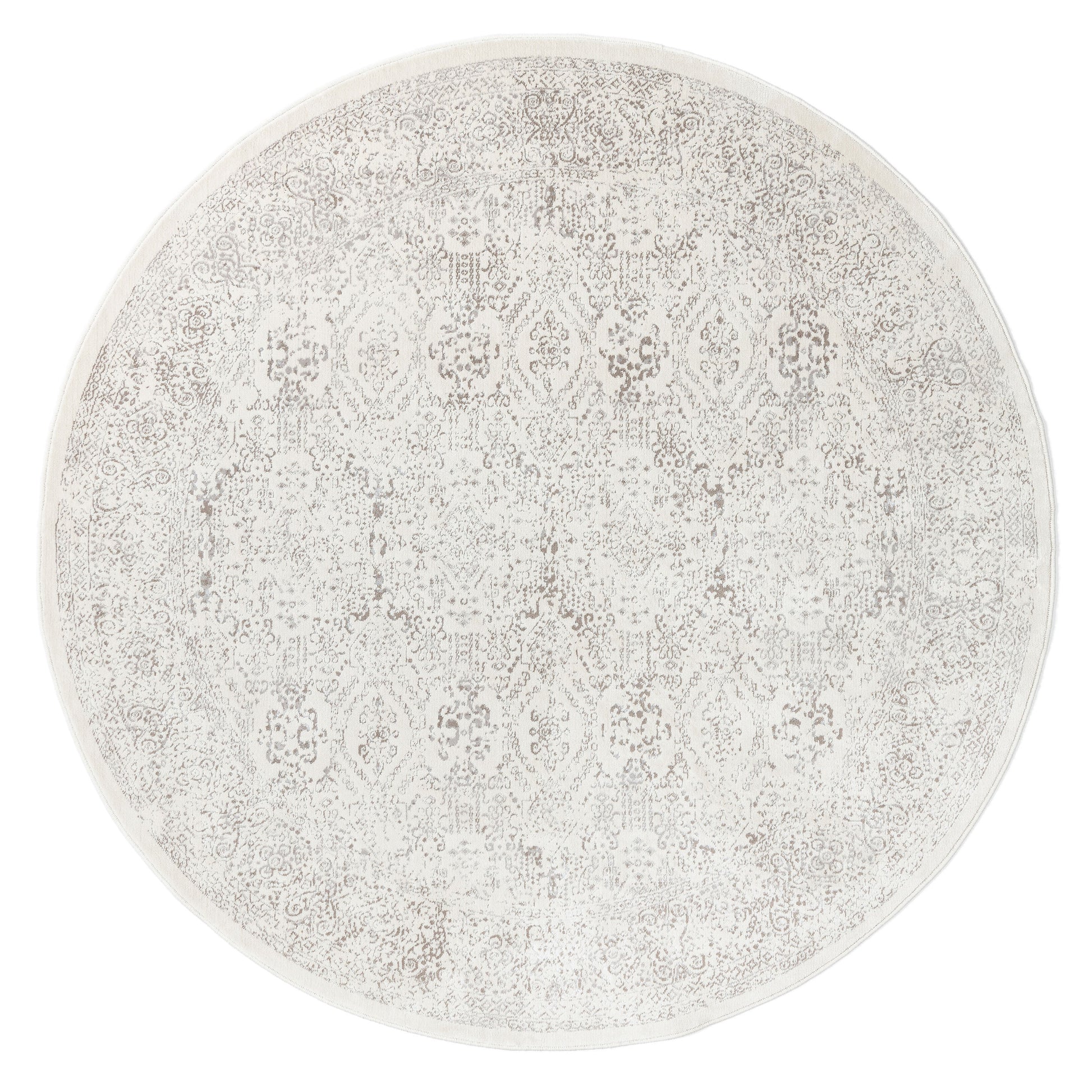 Madison Ivory And Grey Traditional Distressed Round Rug