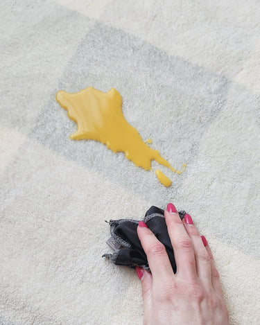 Cleaning results may vary depending on the type of stain. Blot spills promptly and wash by hand or machine as needed. Always check that your rug is machine-washable before proceeding.