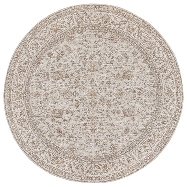 Moselle Beige and Brown Floral Distressed Round Rug