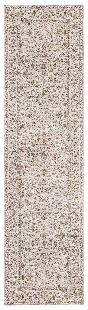 Moselle Beige and Brown Floral Distressed Runner Rug