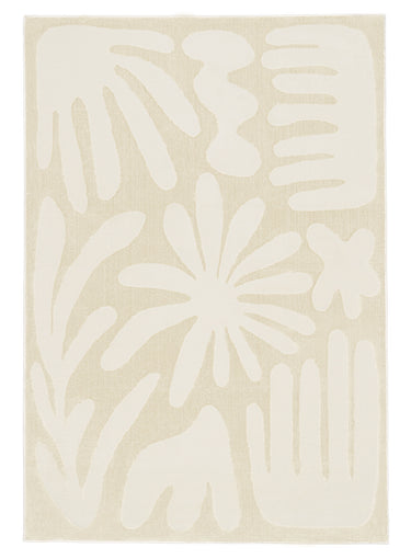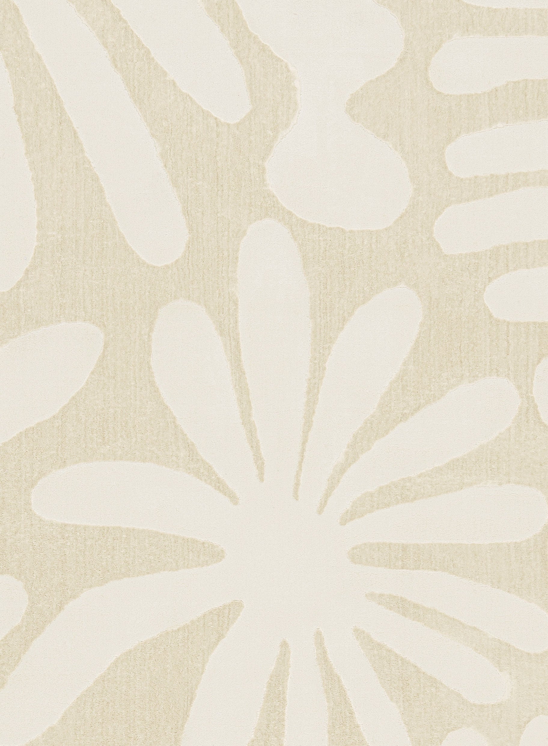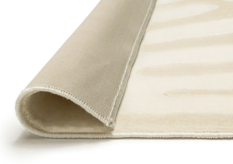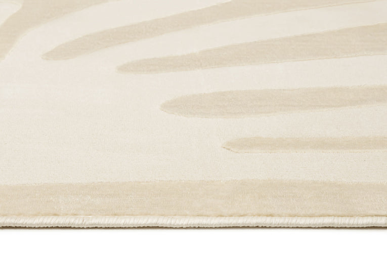 Palila is a luxe foldable rug featuring a high low textured modern abstract leaf design in neutral ivory cream tones. A timeless, modern and unique design to add to any space.