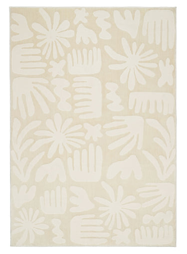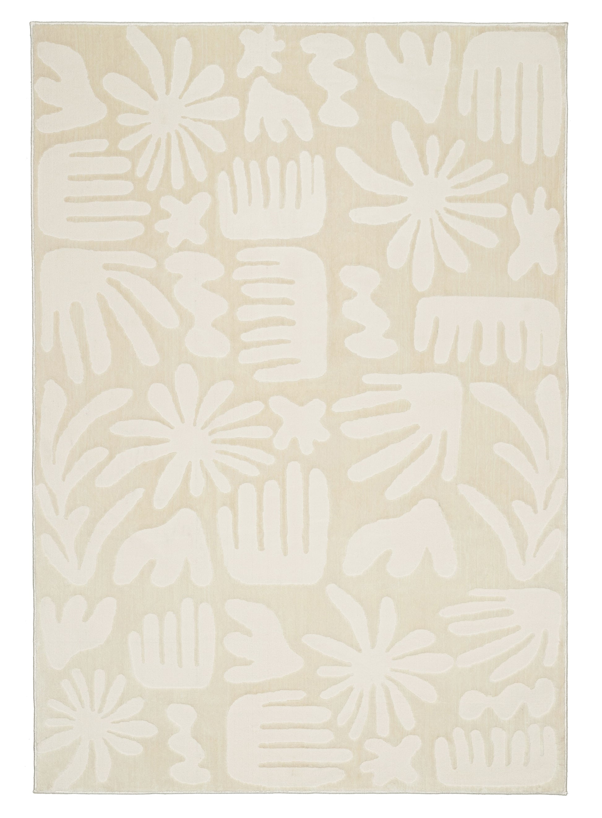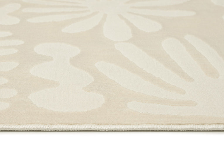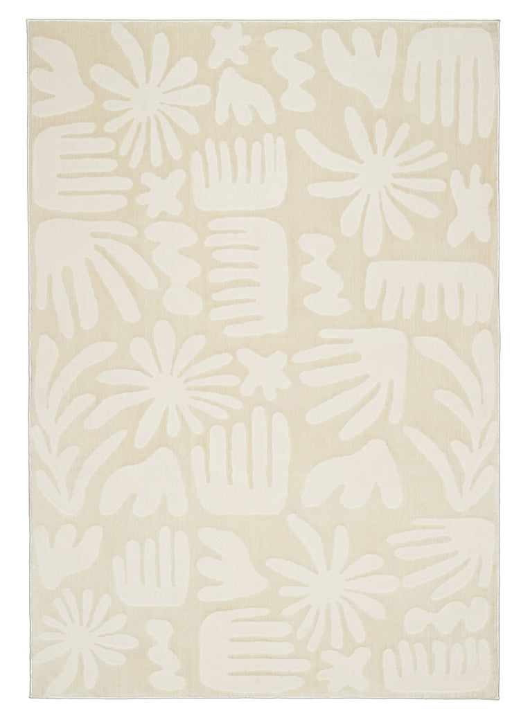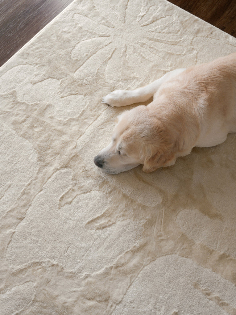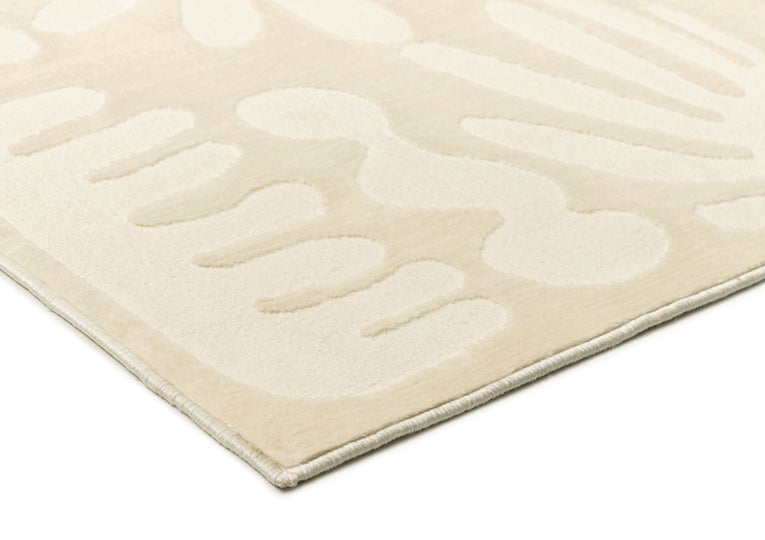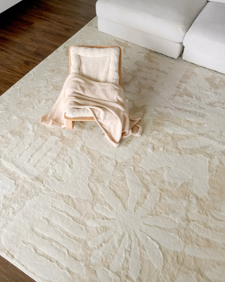 Salah is a luxe foldable rug featuring a high low textured modern abstract leaf design in neutral ivory cream tones. A timeless, modern and unique design to add to any space.
