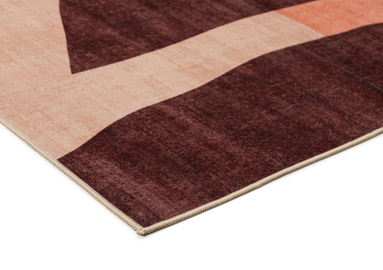 Samia is a smooth machine washable and foldable flatweave rug in a warm red and beige colour with an abstract design. A versatile and timeless addition to any space.