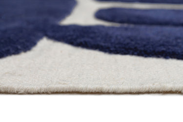 Simora is a blue wool rug featuring a carved abstract pattern.