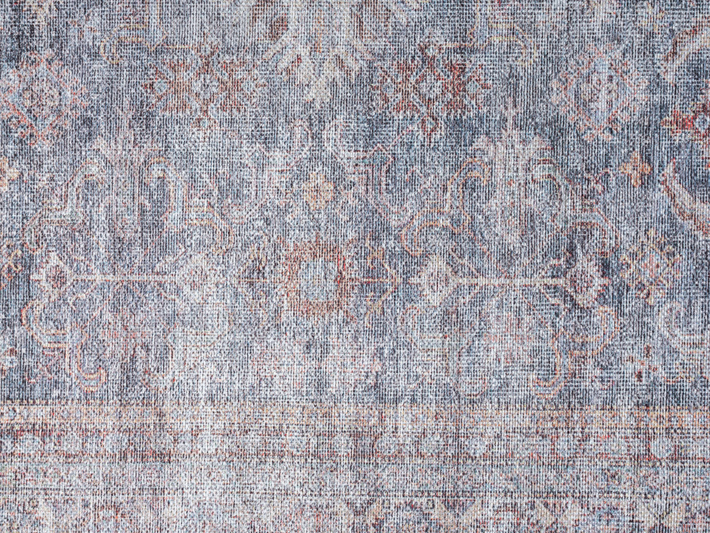 Mindi Grey and Pink Traditional Distressed Washable Rug