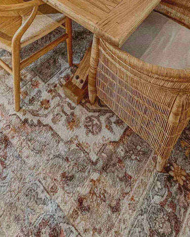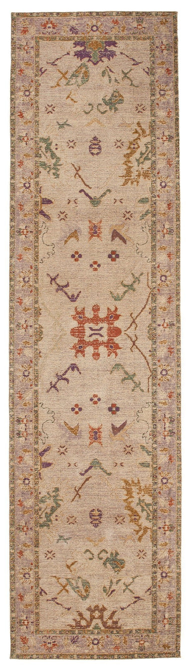 Olivia Boho Traditional Beige Purple and Coral Rug