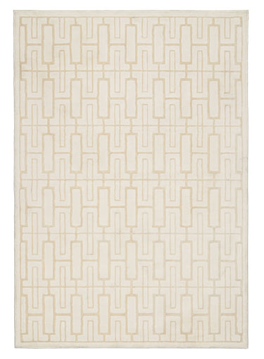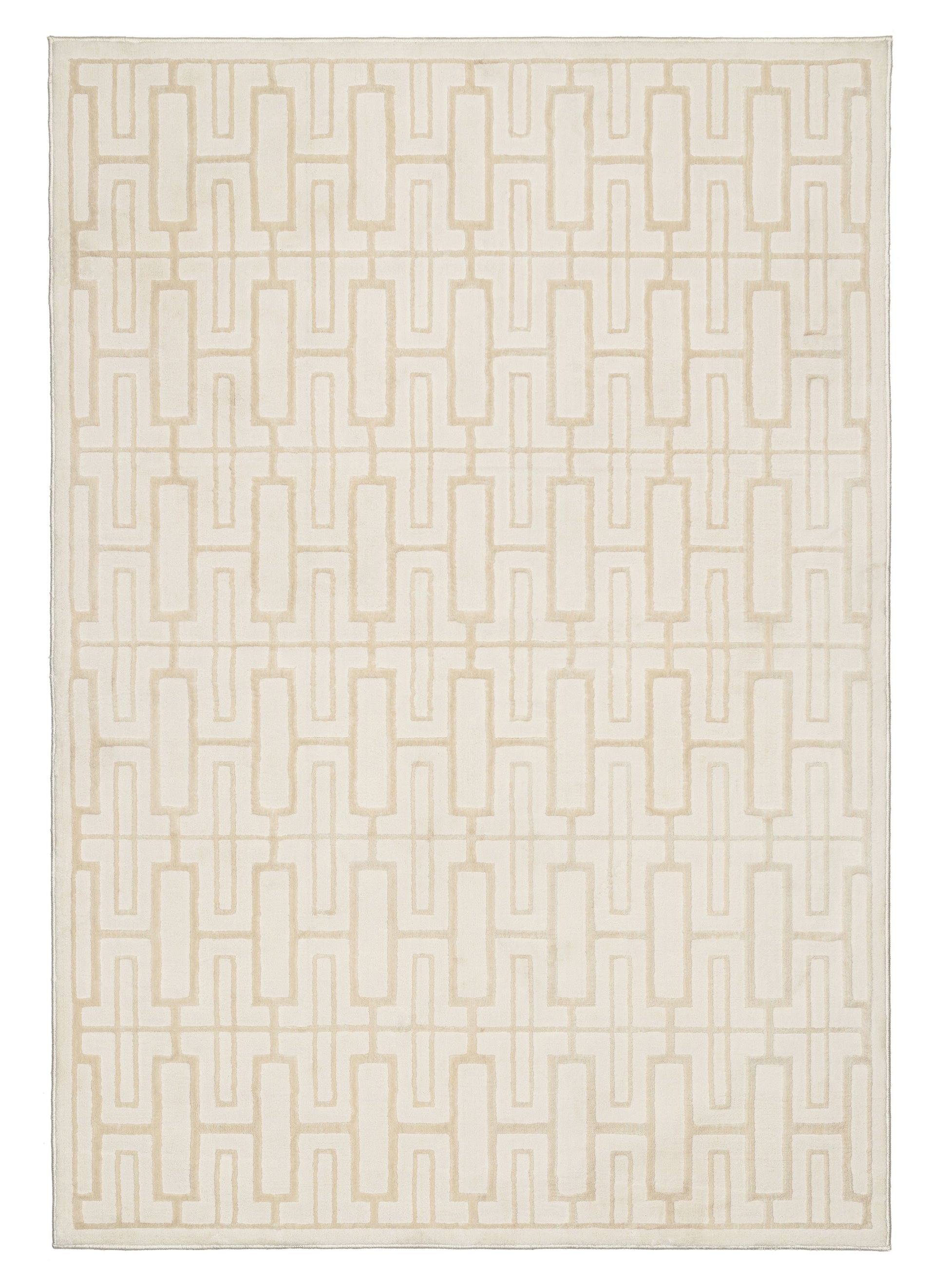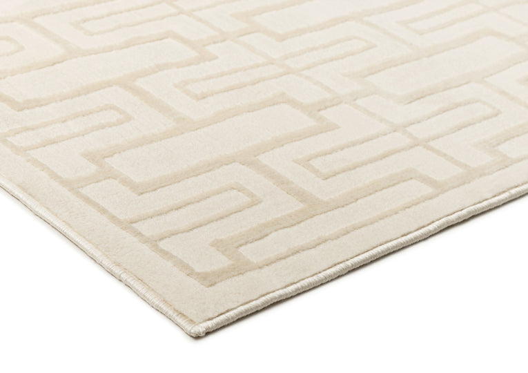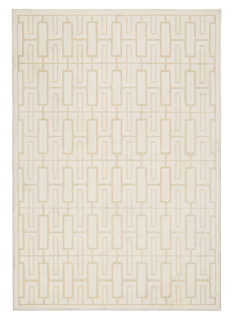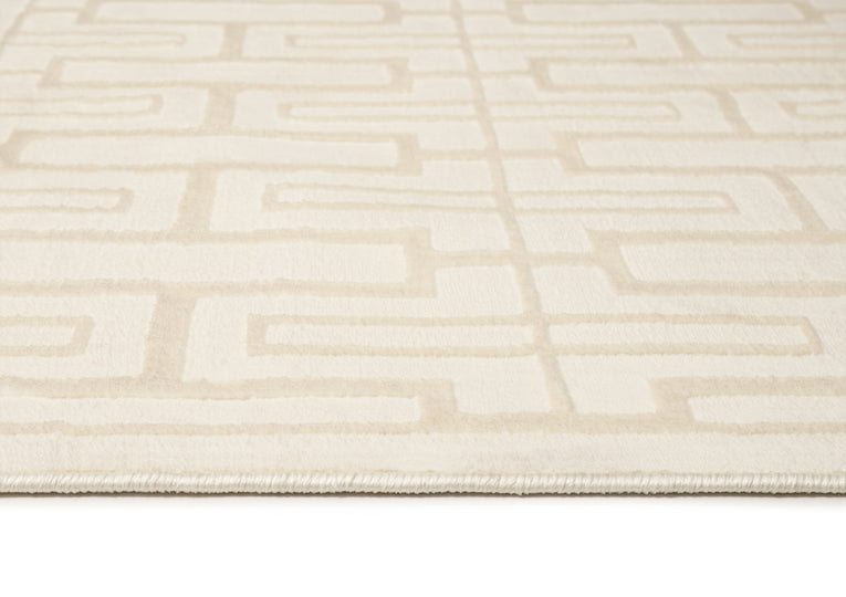 Tindouf is a luxe foldable rug featuring a high low textured modern geometric design in neutral cream tones. A timeless, modern and unique design to add to any space.