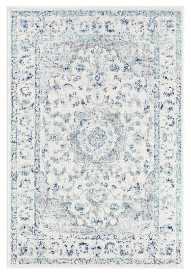 Noor Blue and Ivory Traditional Distressed Rug