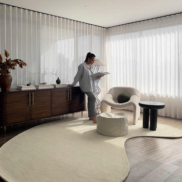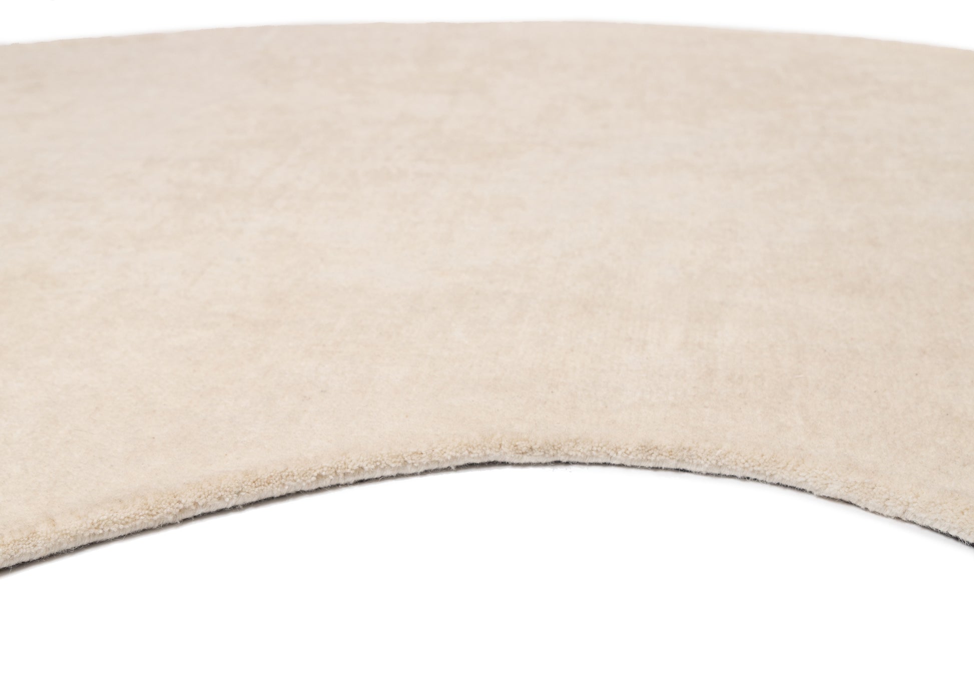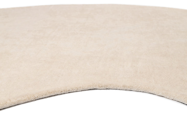 Vanni is a luxe ivory cream rug with an asymmetrical bean shape.