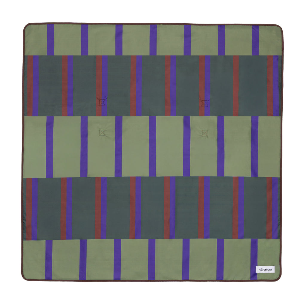 Bold and introspective, Varda is moody in all the right ways. Olive, navy, and oxblood tones dance through its graphic rhythm; ideal for design-lovers, or anyone drawn to deep colour and strong form.