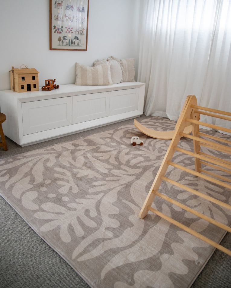 Viki Grey Beige Leaves Rollie Pollie Playmat