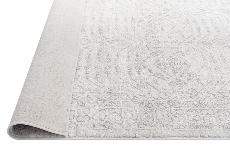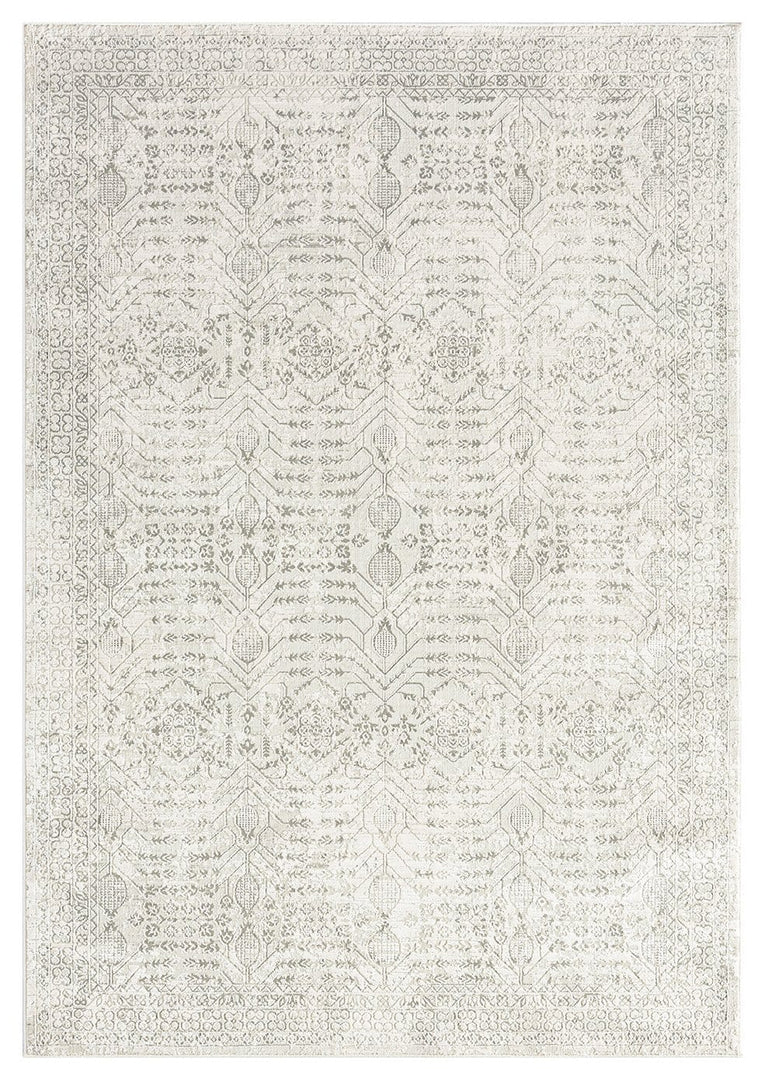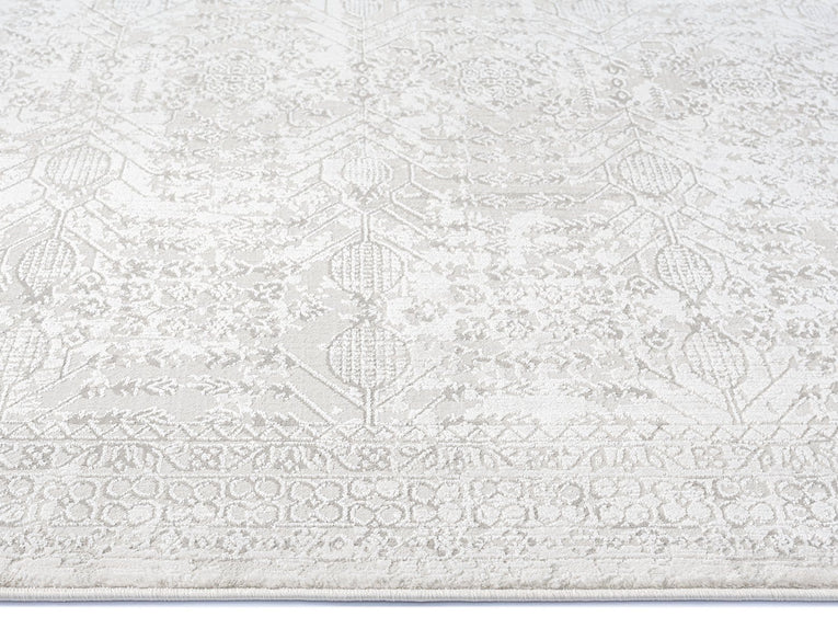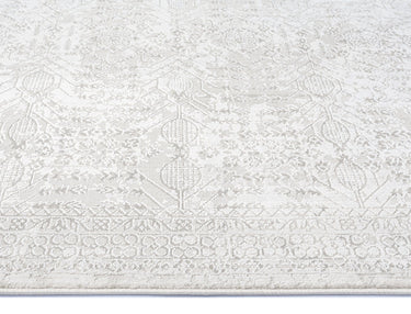 Wilamina is a lovely grey rug with a traditional bordered floral motif in ivory.