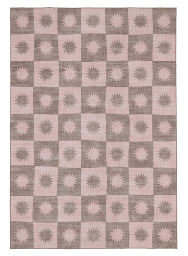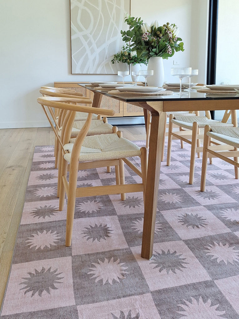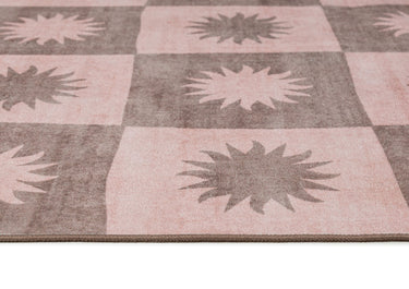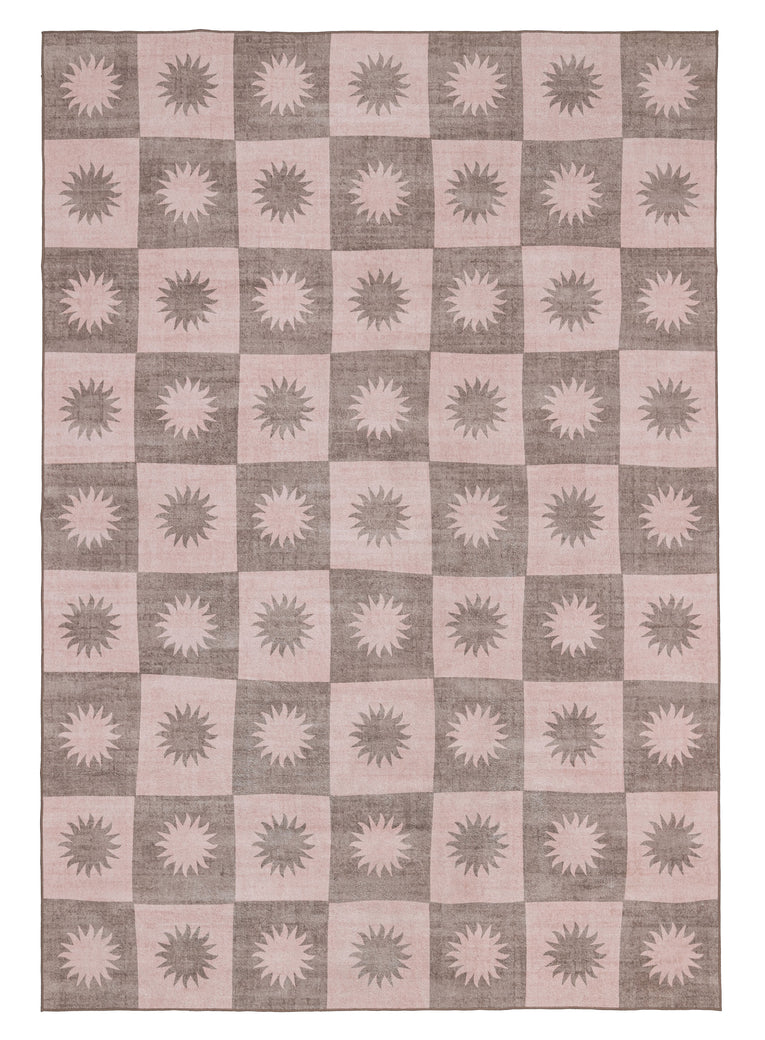 Zimra is a smooth machine washable and foldable flatweave rug in a warm pink and peach colour with a checkered design. A versatile and timeless addition to any space.